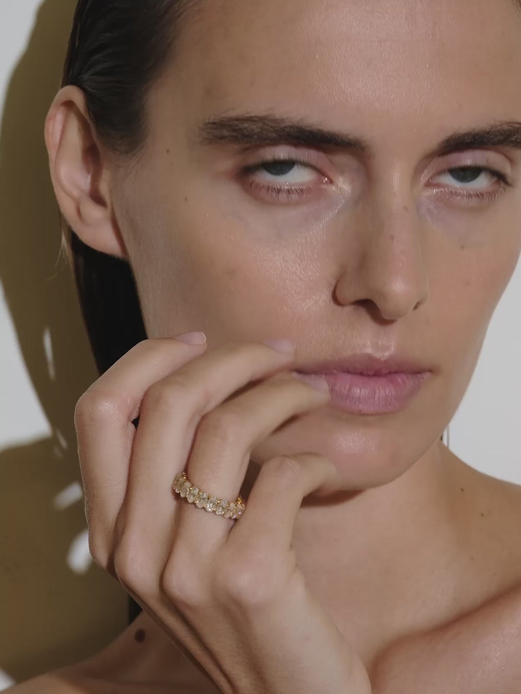 Oval-cut lab-grown diamonds set in a low-profile shared prong eternity band in your choice of 14k yellow gold or 14k white gold. Designed for everyday comfort, the shared prong setting allows for less metal between each stone, enhancing their brilliance.